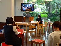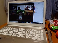 ![]() 現在運営委員会は2会場(コミュニティルームと子どもルーム)に分かれリモート会議。 |