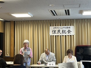 2025年4月19日(土)住民総会が無事終了し、新年度がスタートしました。 議長 松尾竜哉さんにより審議され ■2024年度活動報告・会計報告 ■2025年度活動計画・予算 ■2025年度運営委員・監査 が承認されました。 出席者48人 |