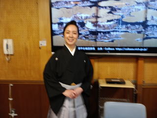 謡曲の発声を体験したあと、お手本をしていただき、会場全体で背筋を伸ばし声を張り上げて朗読し、胸を張って終了しました。楽しく元気が湧いて来る一日でした。 |