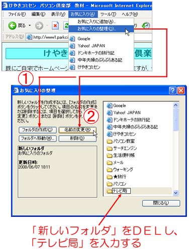 「お気に入りの整理」を一旦閉じて、移動したいタイトルを目的の場所、もしくはフォルダの上にドラッグ・アンド・ドロップ。