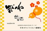 手作り年賀状。フレーム、梅、ヒョウタンのカットをワードの作画機能で作りました。 |