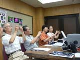 カメラマンの関口先生をお招きしてデジカメの撮り方を勉強しました。講義の後、近所の公園で撮影実習をしました。写真を撮る心が大事とのお話に一同感動。 |